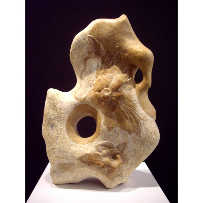 Esta escultura de cierto carácter modernista, la realiza en roca de mármol que el mismo extrae de torrentes del levante de la Isla, seleccionando formas sinuosas y caprichosas de este mineral formado de piedras calizas expuestas, durante miles y miles de años, a la intemperie; en ellas trabaja siguiendo un proceso de talla y desgaste con punzón, consigue dibujos y formas de gran precisión, respetando y dialogando con la propia forma natural de la roca. La flor a la roca es un ejemplo de este diálogo con la materia y el entorno que la envuelve, como si este se hubiera impreso en la misma, dejando entrever una flor; motivo principal de la pieza. Es una obra única original, con la firma gravada en la piedra. Se encuentra en muy buen estado, con apenas señales del paso del tiempo.