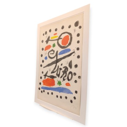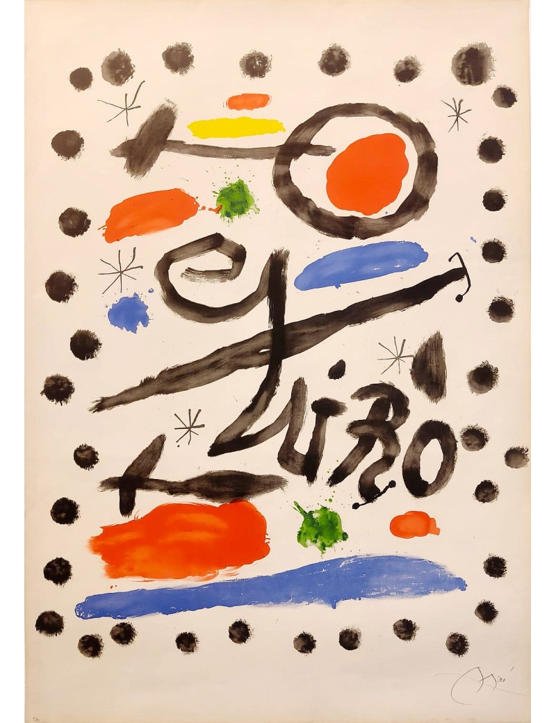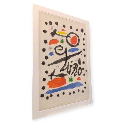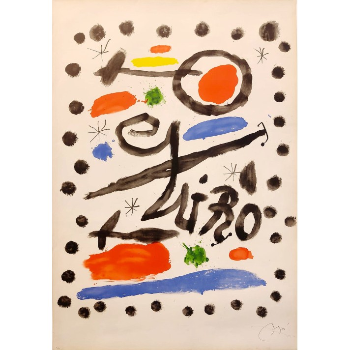 Es una litografía "Avant lettre" editada por la Sala Gaspar, que se presentó con motivo de la exposición “Gravados, litografías e ilustraciones” que se llevó a cabo en las tres galerías de la misma calle y al mismo tiempo, del 11 al 31 de diciembre de 1964. Joan Gaspar recuerda en sus memorias que Joan Miró se paseaba de sala a sala por la calle emocionado "parecía una manifestación", todo en un aire de fiesta. Es una edición de 50 unidades + hors du commerce + PP.AA., son a cinco tintas, firmada y justificada a mano por el artista. Está enmarcada con cristal museo. El papel presenta algún desperfecto por el paso del tiempo y su uso. Puede consultar con nuestro equipo.