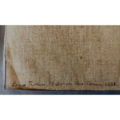 Max Wilhelm Roman, 18 x 22 cm, óleo sobre lienzo sin bastidor, 1885. El pintor realiza este retrato de su madre un año antes de ingresar como profesor en la recién inaugurada escuela Malerinnenschule Karlsruhe, escuela de pintura para mujeres resarcidas de que no se permitiera el acceso de estas a la escuela oficial. Esta escuela fue patrocinada desde el principio por la Princesa y Gran Duquesa de Baden Luisa María Isabel de Prusia. Max Roman será nombrado director del centro nueve años después. El retrato de Louise, a pesar de sus reducidas dimensiones y su sobriedad, es una valiosa demostración del virtuosismo de Max Roman y supone una huella del paso del romanticismo al realismo social de la Alemania de la segunda mitad del siglo XIX.