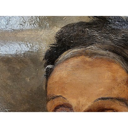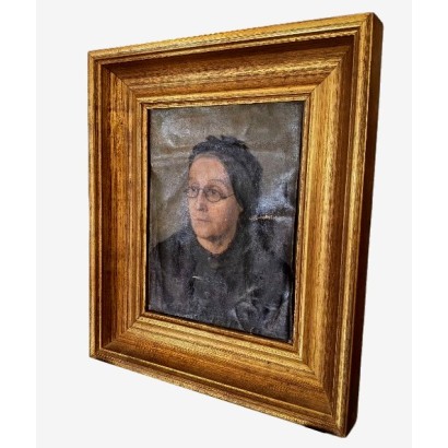 Max Roman esbozaba a mano alzada dibujos de la cordillera de la Selva Negra junto a su hermano Victor, profesor de dibujo de la escuela Bender'schen Lehranstalten. Salían de excursión por esta región del estado de Baden y se paraban en la población de Friburgo de Brisgovia para plasmar, primero en papel y después en lienzo, las calles de esta hermosa ciudad del oeste de Alemania. Cerca de Gutach, la colonia de artistas era uno de sus destinos favoritos. Entre salida y salida, Max no dejaba de visitar a su madre, con la que sentía un gran apego, teniendo en cuenta que se casó muy tarde, a la edad de 42 años con la que había sido su alumna Käthe Försterling. El pequeño cuadro deja muestra de la estima entre madre e hijo. El estado de la obra, lamentablemente, es bastante defectuoso y ha sufrido daños con el paso del tiempo. Aun que no sufre ninguna perforación, si tiene rasguños notables con perdida de capa pictórica. Recomendamos consultarnos su estado y visualizar todas las imágenes que aportamos.
